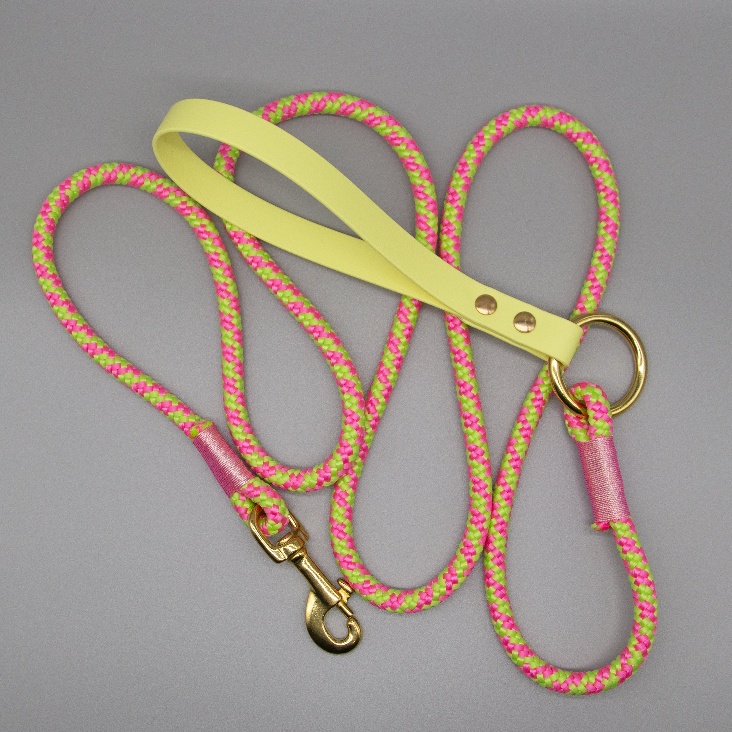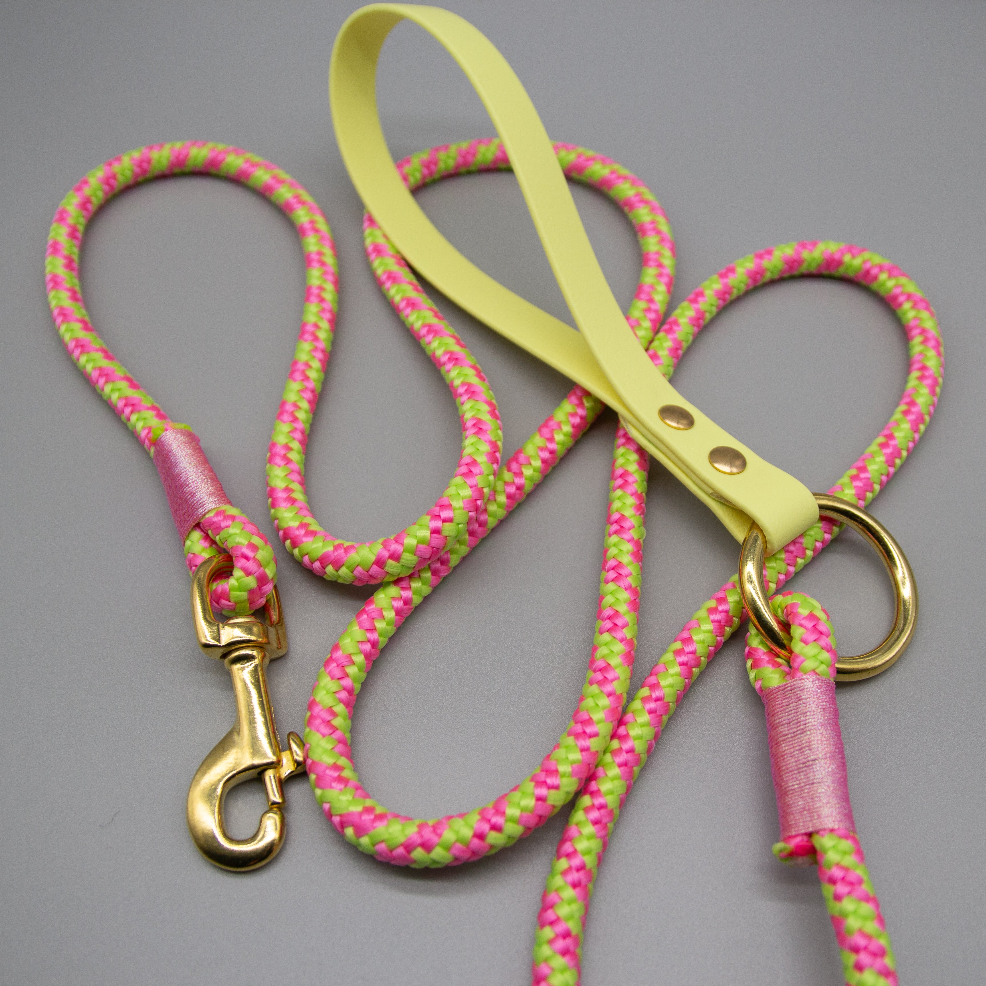 Kullakuu Linnavurle jalutusrihmad on tehtud polüpropüleenköiest, mida kasutatakse kõikjal, kus on vaja vastupidavust ning tugevust. Käepide on tehtud Biothane materjalist, mis oma olemuselt meenutab nahka, aga on omadustelt palju vastupidavam ja kasutajasõbralikum. Biothane materjal on vett tõrjuv, ei ima endasse lõhnu ning selle puhastamine on lihtsam kui ette oskad kujutada - tõmba niiske lapiga üle käepideme ja ongi puhas. Polüpropüleenköis on hea valik jalutusrihmaks, kuna see on väga tugev, kerge ning ei ime endasse vett. Lisaks on see ka mustust tõrjuv.