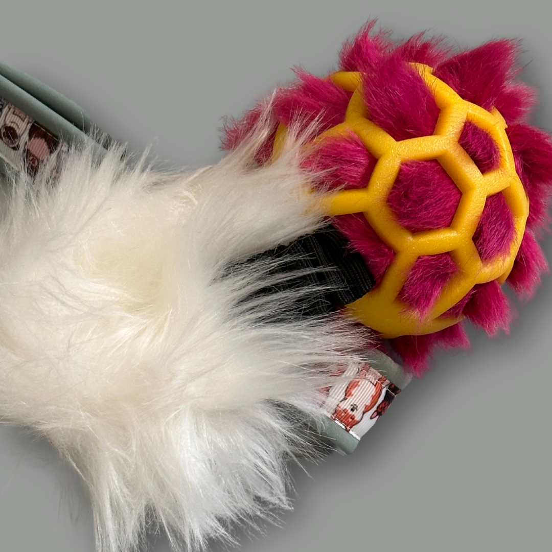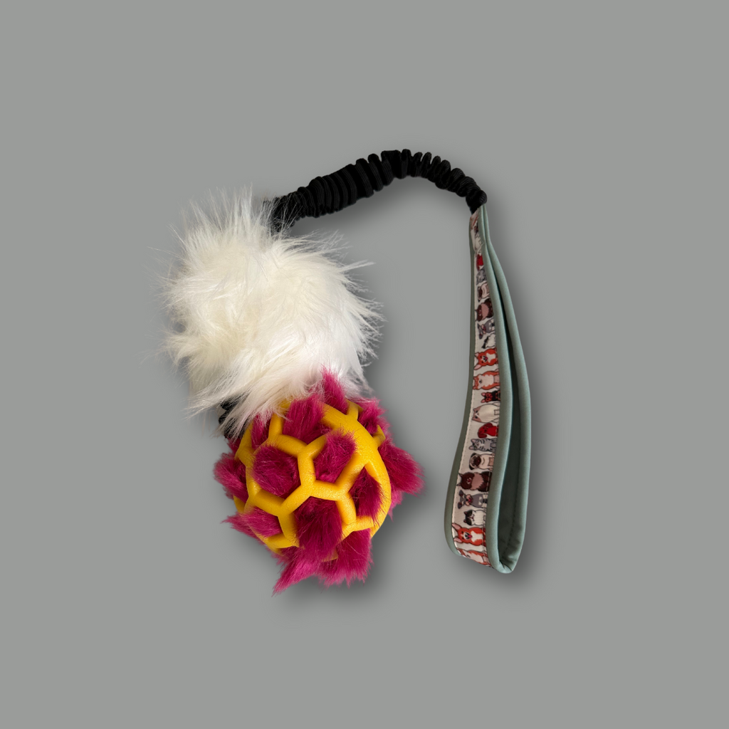 Mänguasja palli- ning paelavärvi valime Sulle vastavalt saadavusele. Samuti on varieeruvust pallis – mõni neist on nagadega, mõni mitte. Mõne mänguasja puhul on lisapõnevuseks juurde pandud karv, mõne puhul lisanöörid. Kui Sul on selles osas kindel nägemus, millist mänguasja Sina oma koerale soovid, siis anna meile sellest tellimisel märku ja anname endast parima, et Sinu soovidele vastata.